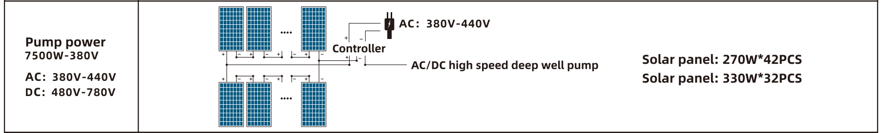 The solar PV system voltage needs to meet the voltage range in the figure below. For example: The4DGS15-31/2-3000S-A/D model matches the solar panel voltage between 480V~780V.